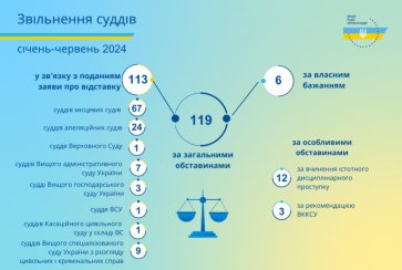 Протягом січня – червня 2024 року Вища рада правосуддя ухвалила рішення щодо звільнення 134 суддів.