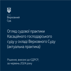 До уваги – огляд актуальної судової практики КГС ВС за червень 2024 року. В огляді висвітлено низку правових позицій в окремих категоріях спорів, що належать до господарської юрисдикції.