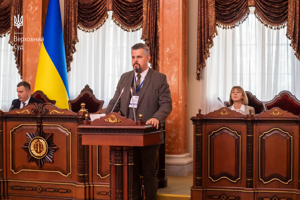 Суддя Великої Палати Верховного Суду Олег Ткачук присвятив свій виступ питанням судового захисту права людей на відшкодування шкоди, заподіяної російською агресією.