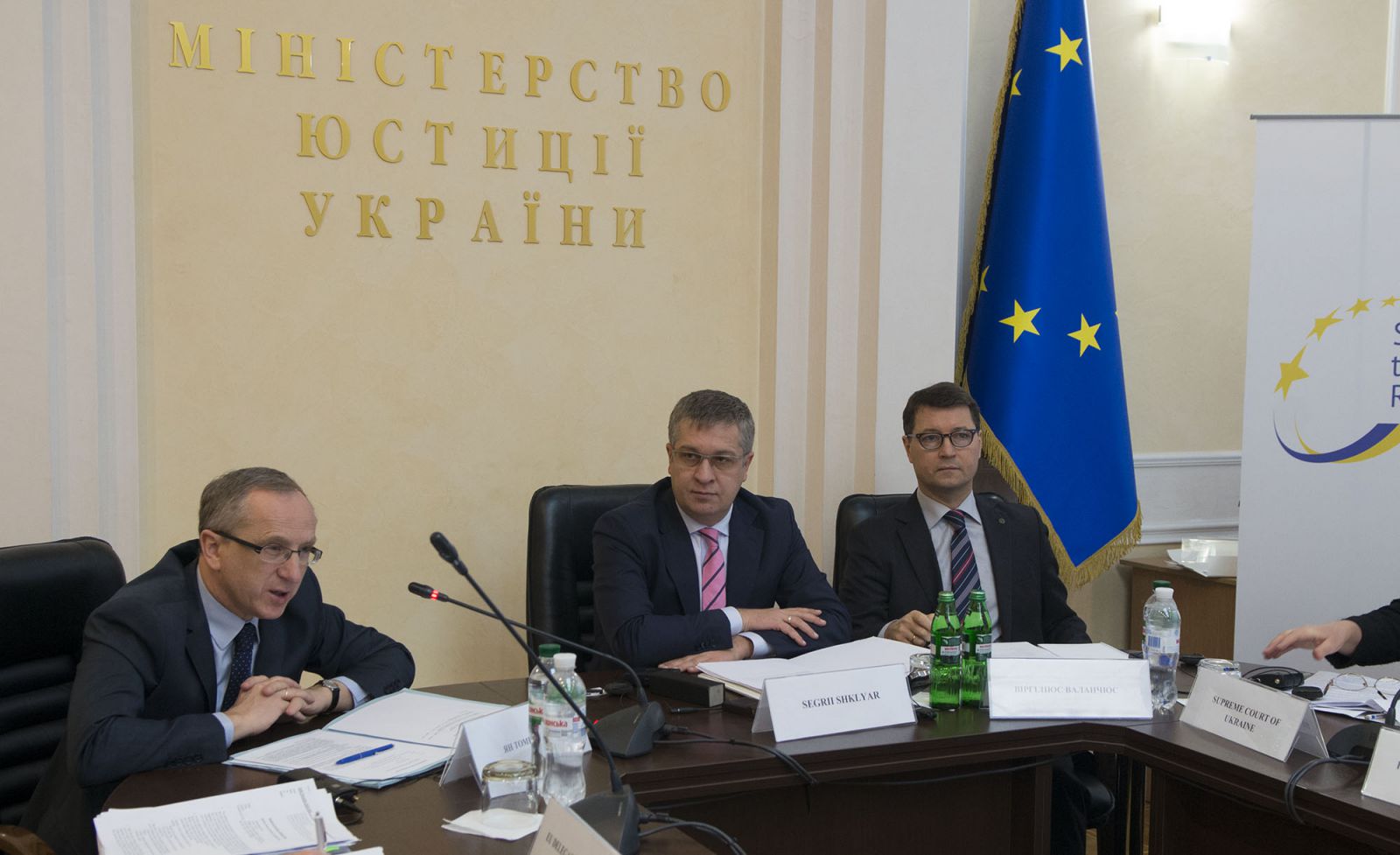 24 листопада 2015 року в Міністерстві юстиції України відбулося  засідання Керівного комітету Проекту ЄС "Підтримка реформ у сфері юстиції в Україні". У заході взяли участь представники бенефіціара та реципієнтів, зокрема, Адміністрації Президента України, Верховного Суду України, вищих судів, Вищої ради юстиції, Вищої кваліфікаційної комісії суддів України, Державної судової адміністрації України, Міністерства юстиції України, Генеральної прокуратури України, інших органів державної влади та представники громадянського суспільства.